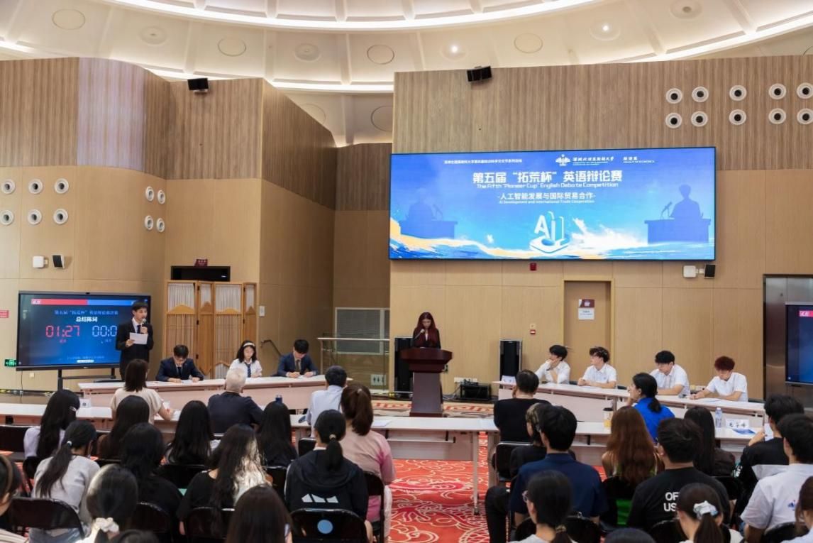 This year’s debate focused on the theme “The Development of Artificial Intelligence and International Trade Cooperation” and was open to all first-year students majoring in International Economics and Trade and Financial Technology, attracting 40 teams in total. The competition spanned one month, progressing through intense preliminary and semifinal rounds, ultimately producing two finalist teams.